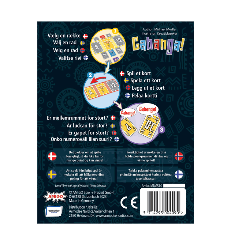 Låter det lätt att bli av med en hand med kort? I "Cabanga!" försöker du bli av med dem så snabbt som möjligt genom att slänga dem skickligt och utan luckor, eftersom andra spelare kan dra fördel av och bli av med sina egna kort på din tur!